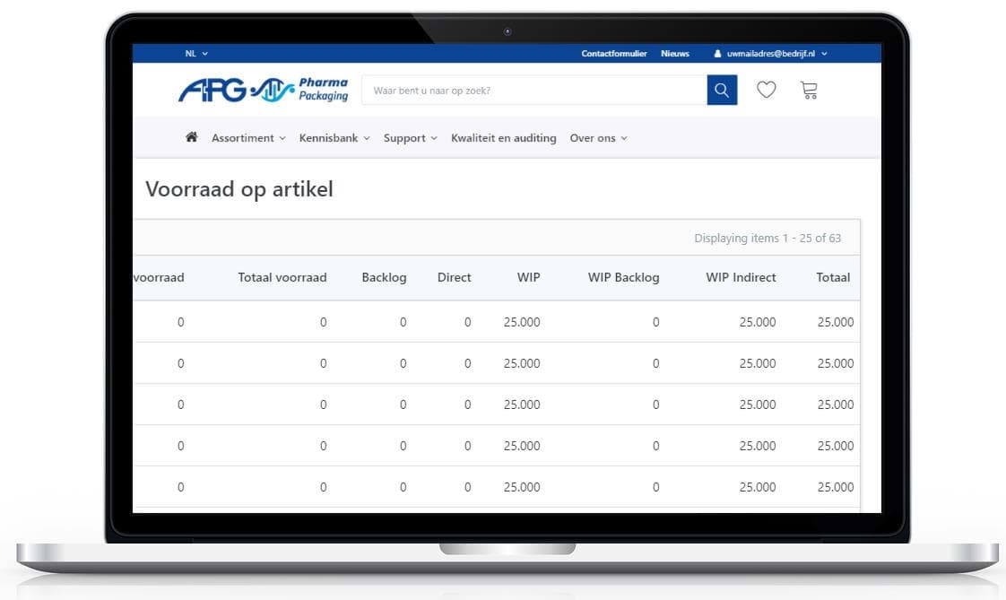 Verkrijg 24/7 inzicht in uw artikelen, WIP (Work in processI en backlog met Voorraad op artikel. Voorraad op artikel kunt u vinden binnen de module Voorraadbeheer. Elk artikel is voorzien van de volgende gegevens:
